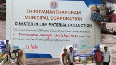 പ്രളയ സഹായത്തിനായി കളക്ഷൻ സെന്റർ തുറന്നുകൊണ്ട് വാഴിച്ചൽ ഇമ്മാനുവൽ കോളേജ് സജീവം