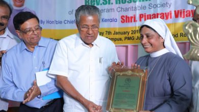 സിസ്റ്റർ റോസിലിന് മുഖ്യമന്ത്രി പിണറായി വിജയൻ ‘ഹ്യുമാനിറ്റേറിയൻ ഓഫ് ദി ഇയർ’ അവാർഡ് കൈമാറി