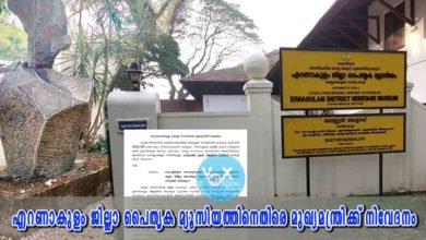 എറണാകുളം ജില്ലാ പൈതൃക മ്യൂസിയം പദ്ധതിയ്ക്കെതിരെ മുഖ്യമന്ത്രിക്ക് നിവേദനം