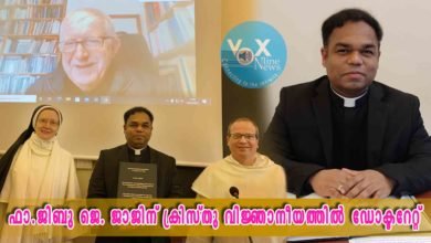 ഫാ.ജിബു ജെ. ജാജിന് ക്രിസ്തു വിജ്ഞാനീയത്തിൽ ഡോക്ടറേറ്റ്