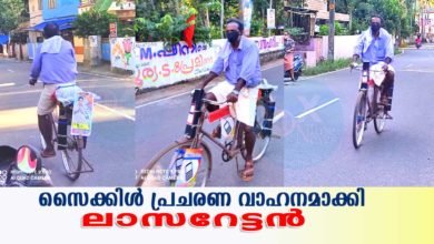 സൈക്കിളില് പ്രചരണത്തിരക്കില് ലാസറേട്ടന്