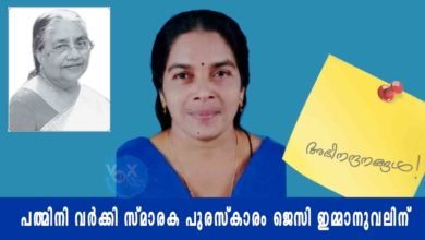 പത്മിനി വർക്കി സ്മാരക പുരസ്കാരം ജെസി ഇമ്മാനുവലിന്; ആലപ്പുഴ രൂപതയ്ക്ക് അഭിമാനം