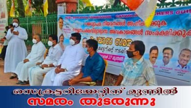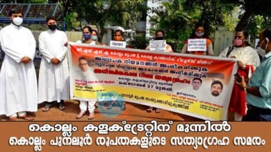 പുനലൂര് കൊല്ലം രൂപതകളുടെ നേതൃത്വത്തില് കൊല്ലം കളക്ട്രേറ്റിന് മുന്നില് സമരം സംഘടിപ്പിച്ചു.