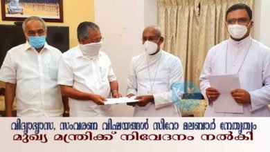 വിദ്യാഭ്യാസം സംവരണ വിഷയങ്ങളില് സീറോ മലബാര് നേതൃത്വം മുഖ്യമന്ത്രിക്ക് നിവേദനം നല്കി