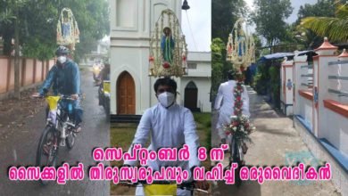പരിശുദ്ധ കന്യകാ മറിയത്തിന്റെ ജന്മദിനത്തിൽ സൈക്കളിൽ തിരുസ്വരൂപവും വഹിച്ച് ഒരുവൈദീകൻ
