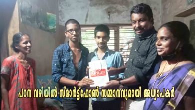 മിടുക്കരായ വിദ്യാർഥികൾക്ക് പഠന വഴിയിൽ സ്മാർട്ട്ഫോൺ സമ്മാനവുമായി രണ്ട് അധ്യാപകർ