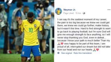 പരാജയത്തിലും ദൈവത്തിന് നന്ദി അര്പ്പിച്ച് ബ്രസീല് താരം നെയ്മര്